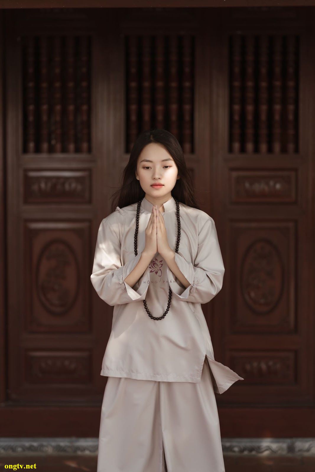 Bức hình chụp em gái đang chắp tay cầu nguyện tại chùa trong trang phục Phật tử với mái tóc dài đang khiến cư dân mạng phát sốt với cô gái xinh xắn đi chùa trong lễ Vu Lan